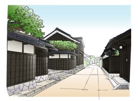 都市計画の仕事に携わっていたので、都市整備や景観づくりのためのイメージ図が多いです。写真と違い、現存する建物などへの直接的な指摘と受け止められにくいので都合がよいようです。